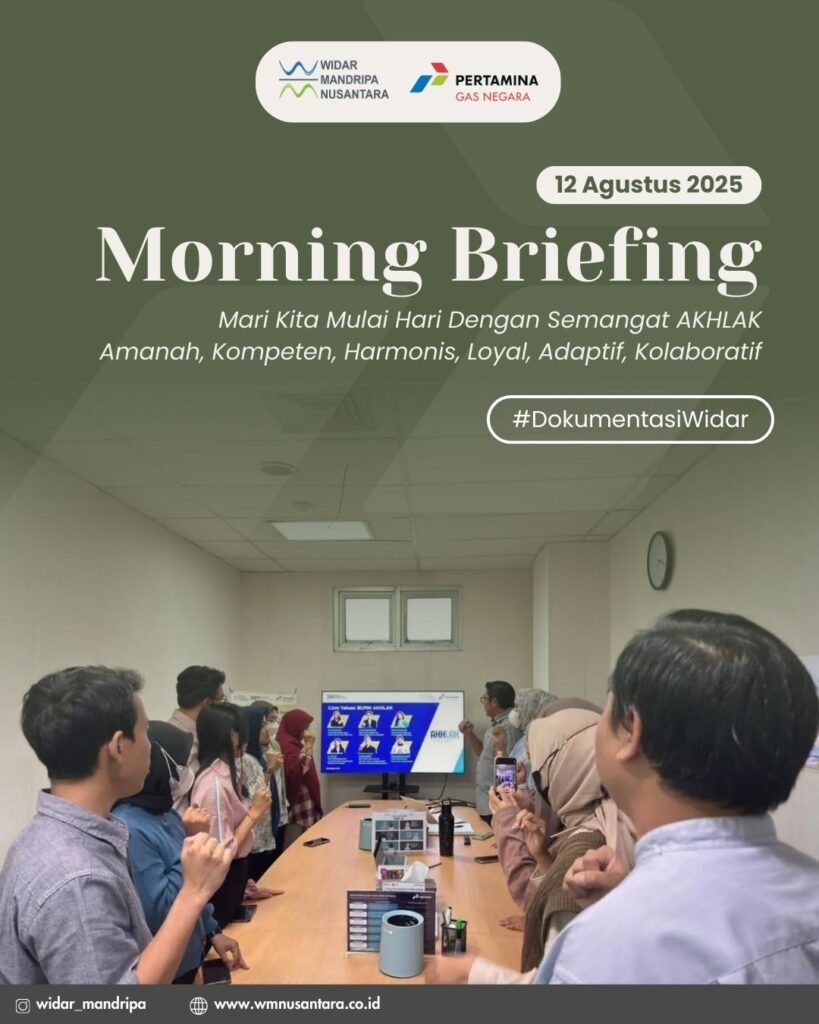 Kegiatan Morning Briefing PT Widar Mandripa Nusantara Pagi Adalah waktu terbaik untuk menyatukan visi. Mari kita mulai hari dengan semangat AKHLAK, menjaga amanah, terus meningkatkan kompetensi, membangun keharmonisan, loyal pada tujuan, adaptif pada perubahan, dan berkolaborasi untuk hasil yang terbaik. #WidarMandripaNusantara #Widar #MorningBriefing #DokumentasiWidar
