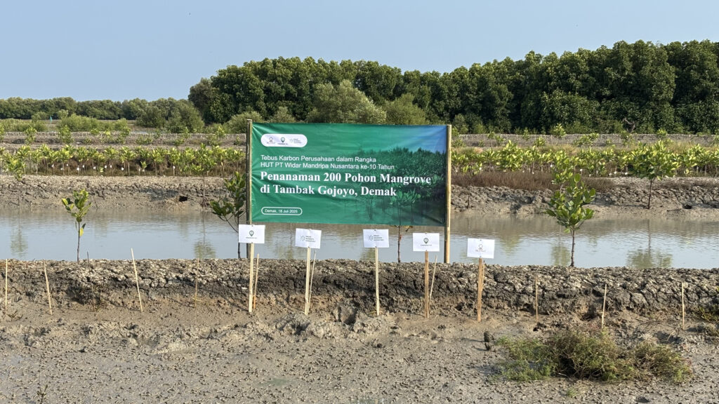 Dalam rangka memperingati HUT ke-10 PT Widar Mandripa Nusantara, dilaksanakan Program Tebus Karbon melalui penanaman 200 Bibit pohon mangrove di Tambak Gojoyo, Demak. Program ini bertujuan untuk menebus jejak emisi karbon 3,89 tCO2e serta menghitung estimasi simpanan karbon menggunakan pendekatan Tier 3 selama masa monitoring tiga tahun. Melalui program ini, PT Widar Mandripa Nusantara tidak